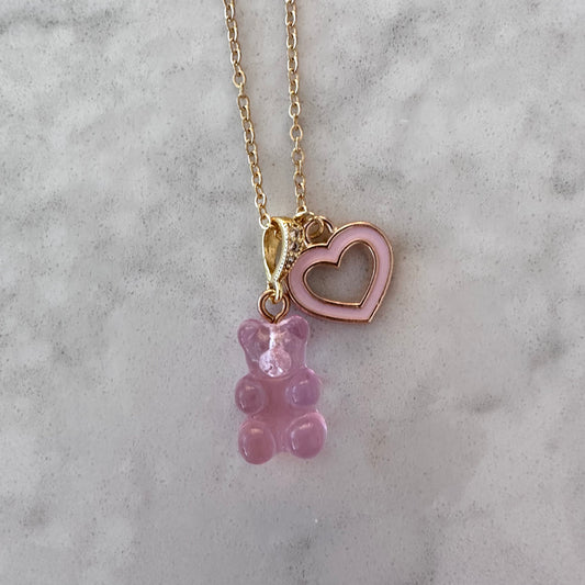 Violet Signature Jelly Bear Heart Necklace