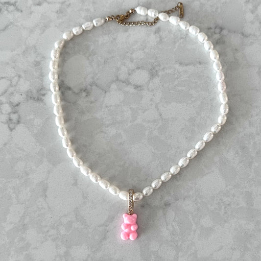 Princess Bear Pearl Necklace
