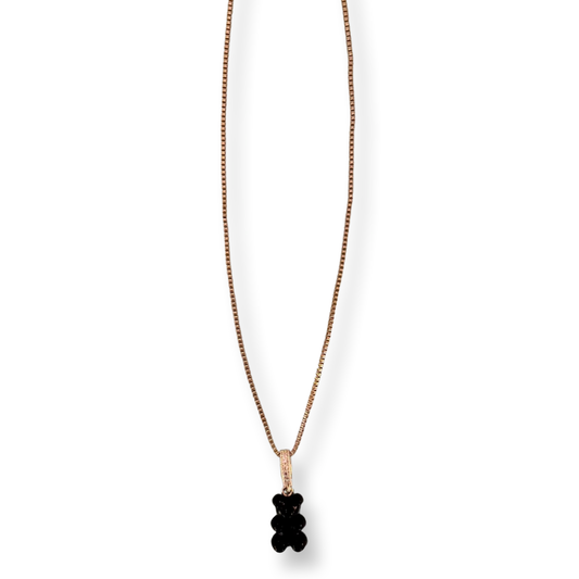 'Ours Noir' Gold-Plated Box Chain Jelly Bear Necklace