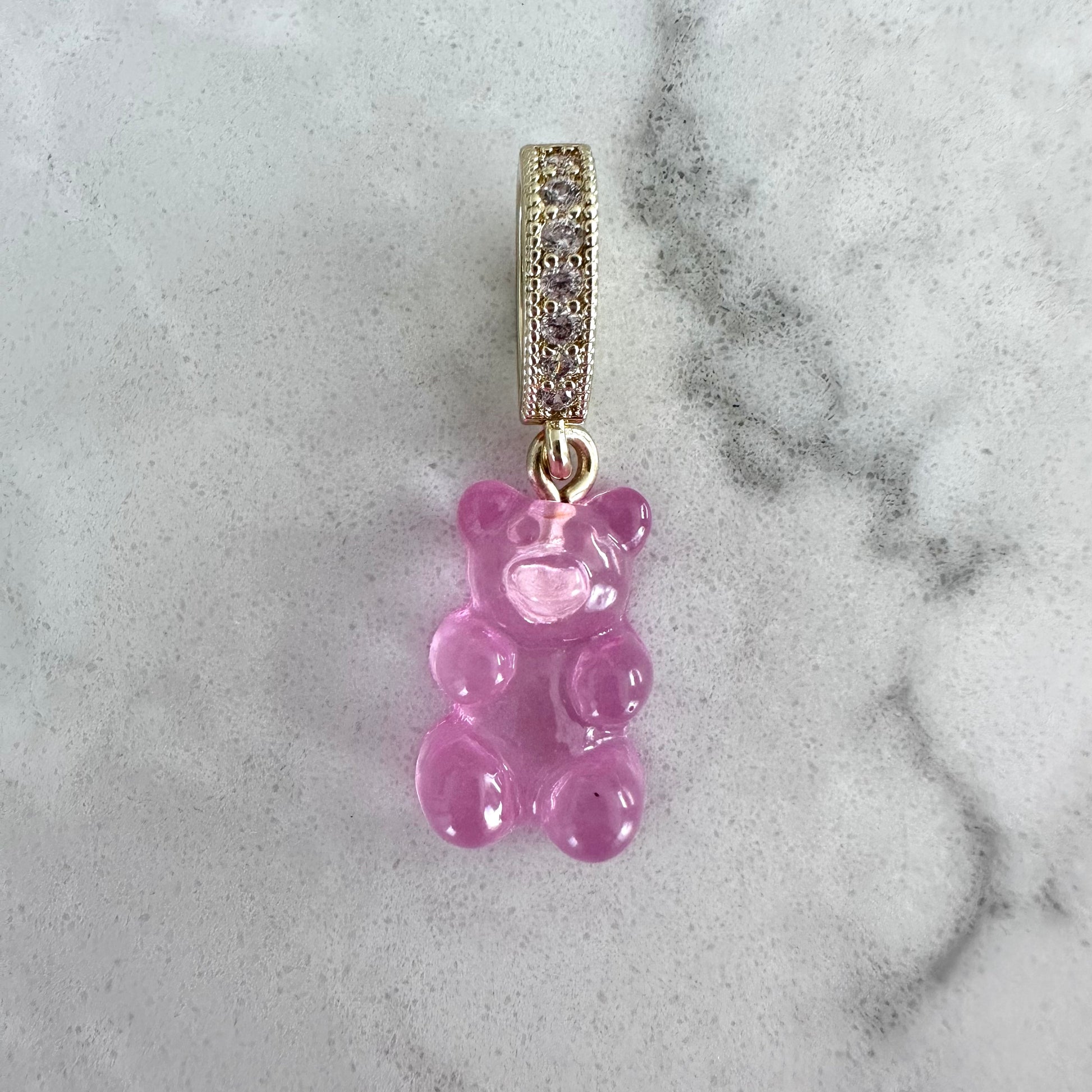 Our signature limited edition luxury charm drops in a transluscent rose pink jelly bear. Elevate an existing necklace or double up with another charm - double the jelly, double the fun!