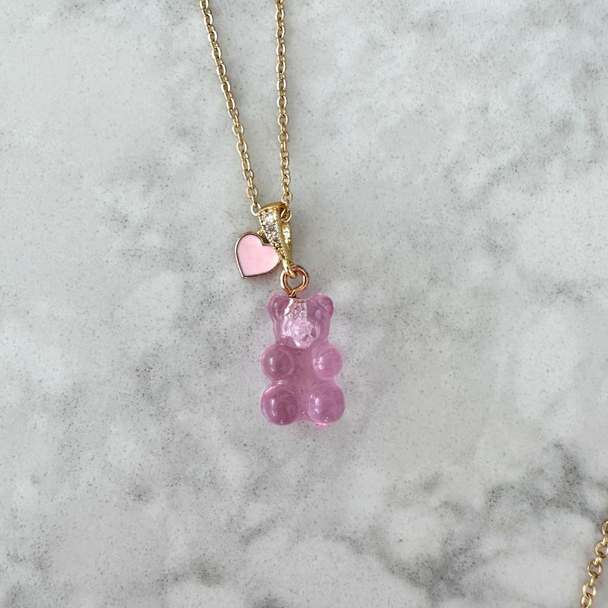 On Wednesdays...I mean EVERYDAY - we wear pink! This adorable and dainty Signature Jelly Bear necklace was hand crafted and designed with heart,